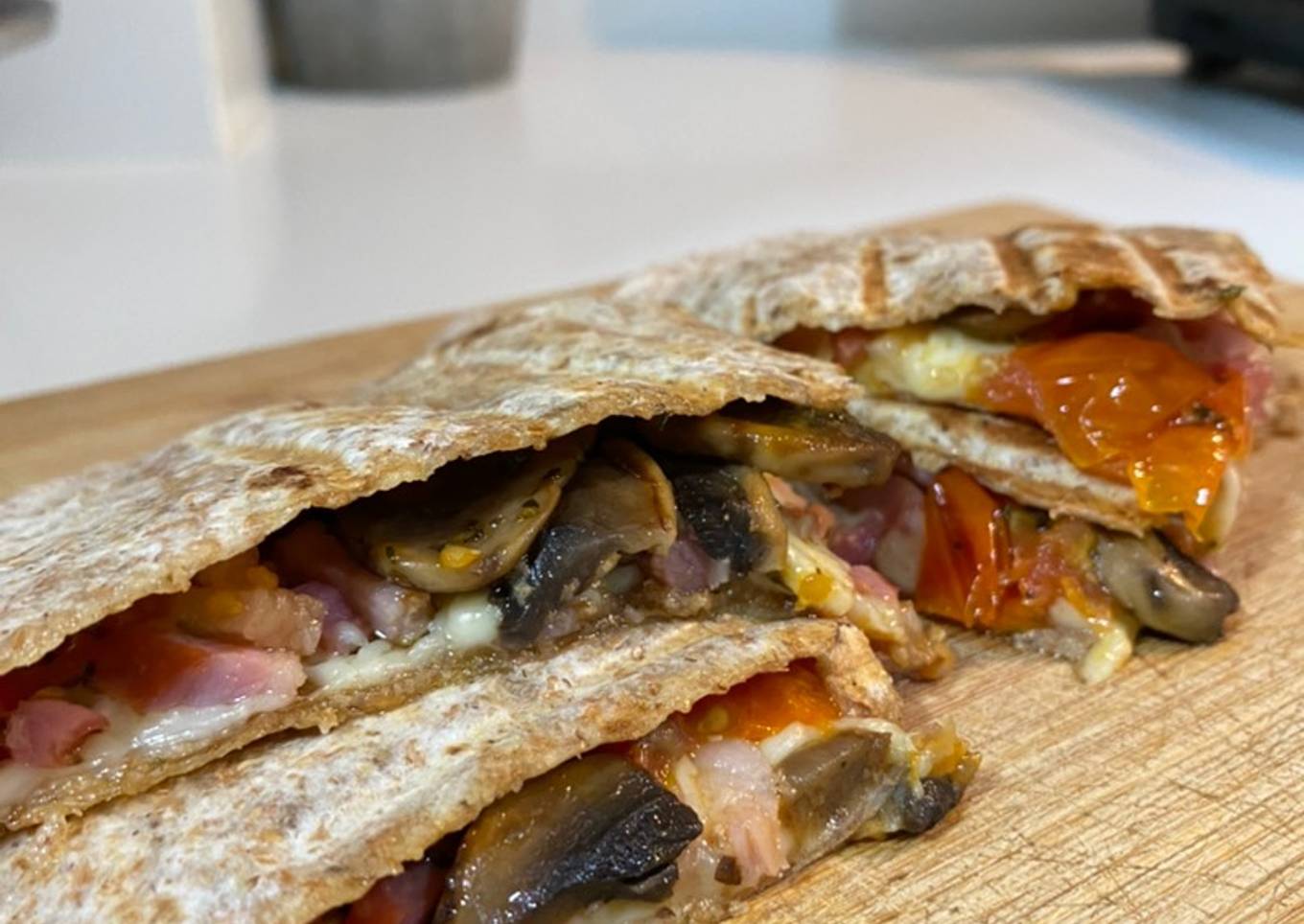 Wrap de champiñones, bacon, cherrys y queso 🌯