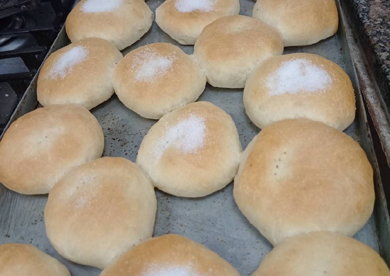 Luego amasamos en茅rgicamente y dejamos reposar en un lugar c谩lido para que duplique su tama帽o. - Una vez que el bollo duplic贸 el tama帽o, amasamos no mucho y cortamos los bollitos, formamos las tortitas y dejamos leudar nuevamente en un lugar c谩lido.